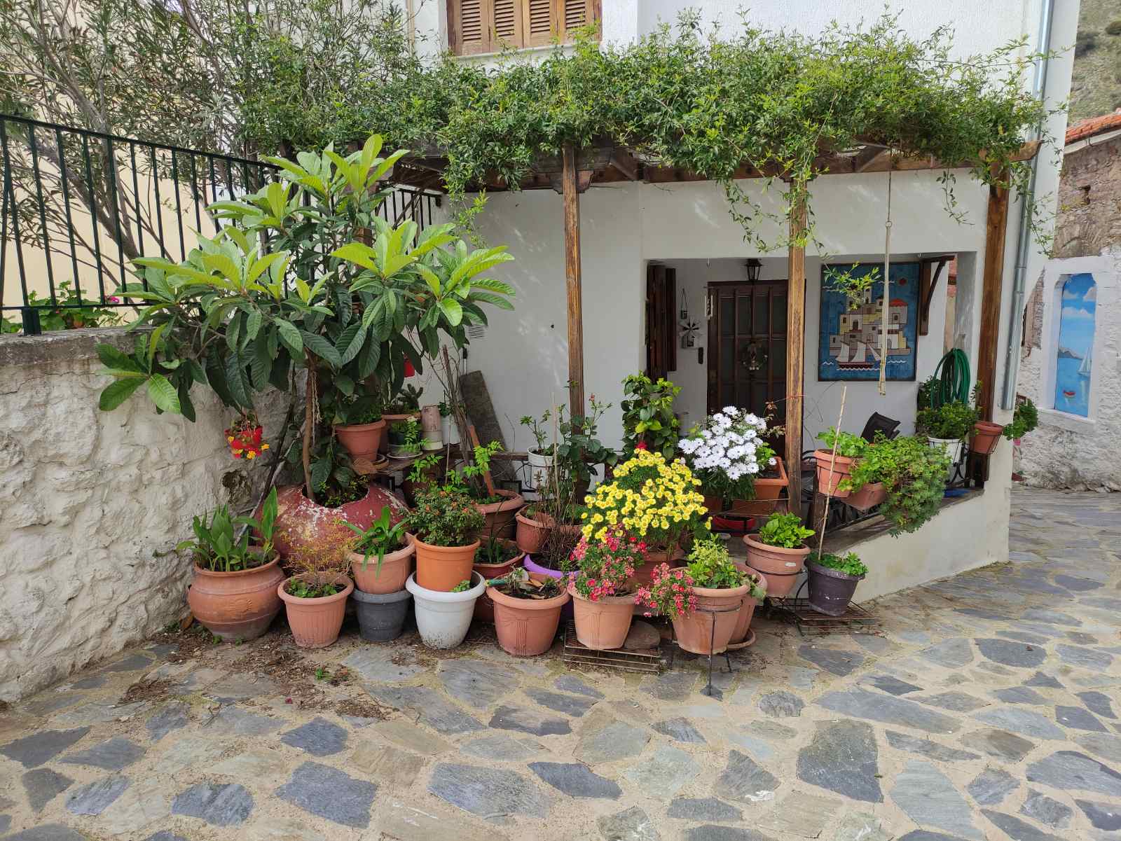 Οι κάτοικοι του «χωριού» ξεκίνησαν την περιφορά από την Εκκλησία της Υπαπαντής και μέσα από τους δρόμους του οικισμού, με ελάχιστα πλέον, όπως και σε όλη την Χιακή ύπαιθρο ανοικτά...