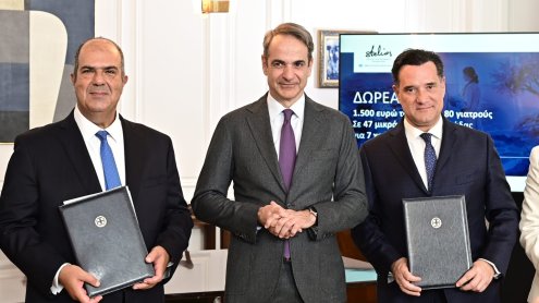 Ο Πρωθυπουργός Κυριάκος Μητσοτάκης παρέστη στην εκδήλωση παρουσίασης της δωρεάς του Φιλανθρωπικού Ιδρύματος Στέλιος Χατζηιωάννου, που αποσκοπεί στην ενίσχυση των αποδοχών 80 γιατρών και αγροτικών γιατρών που υπηρετούν με φυσική παρουσία σε 47 μικρά νησιά της Ελλάδας.