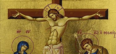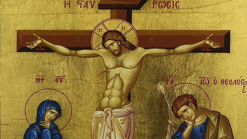 «Εἱστήκεισαν παρὰ τῷ Σταυρῷ τοῦ Ἰησοῦ ἡ μήτηρ αὐτοῦ, ἡ ἀδελφή τῆς μητρὸς αὐτοῦ Μαρία ἡ τοῦ Κλωπᾶ καὶ Μαρία ἡ Μαγδαληνή. Ἰησοῦς οὖν ἰδών τὴν μητέρα αὐτοῦ, καὶ τὸν μαθητὴν παρεστῶτα ὅν ἠγάπα, λέγει τῇ μητρὶ αὐτοῦ, γύναι ἰδοὺ ὁ υἱός σου. Εἷτα λέγει τῷ μαθητῇ ἰδοὺ ἡ μήτηρ σου. Καὶ ἀπ’ ἐκείνης τῆς ὥρας...