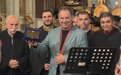 Ο Σύλλογος Ιεροψαλτών Χίου «Ρωμανός ο Μελωδός» τίμησε σήμερα το απόγευμα στον Ι.Μ. Ναό Χίου τον Γρηγόρη Νταραβάνογλου, Άρχοντα Μαίστορα της Μ.Τ.Χ.Ε. Προηγήθηκε πανηγυρικός εσπερινός για τον προστάτη του Συλλόγου Άγιο Ρωμανό τον Μελωδό όπου ο κ. Νταραβάνογλου διεύθυνε τους χορούς των ψαλτών.