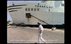 Βρισκόμαστε στο 1995 και η ΑΛΗΘΕΙΑ ΤV καταγράφει ένα κάθε άλλο από συνηθισμένο γεγονός. Τις προσπάθειες αποκόλλησης του πλοίου ΘΕΟΦΙΛΟΣ, που είχε προσκρούσει στην Προκυμαία της Χίου.