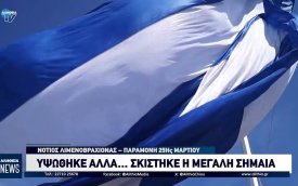 Υψώθηκε στον νότιο λιμενοβραχίονα η μεγάλη Ελληνική Σημαία, παραμονή του εορτασμού της 25ης Μαρτίου.