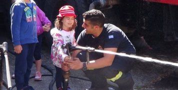 Η επίσκεψη τους είχε απ’ όλα, είδαν στολή Πυροσβέστη, ενημερώθηκαν με απλό τρόπο για τις φωτιές και στο τέλος έριξαν και νερό με τη… μάνικα....