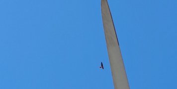 Μεστά. Αετός ή γεράκι δίπλα στην ανεμογεννήτρια