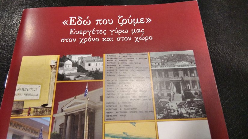 Και μέσα που λέτε σ’ αυτή την… ωραία ατμόσφαιρα, με βρίσκει στο δρόμο η πάντα δραστήρια Διευθύντρια του 4ου Γυμνασίου Ειρήνη Χούλη και με κάνει κοινωνό του πονήματος των μαθητών του, με την καθοδήγηση της Καθηγήτριας Γιασεμής Αμπαζή, ένα καλαίσθητο ημερολόγιο με τίτλο «Εδώ που ζούμε. Ευεργέτες γύρω μας στον χρόνο και στον χώρο».