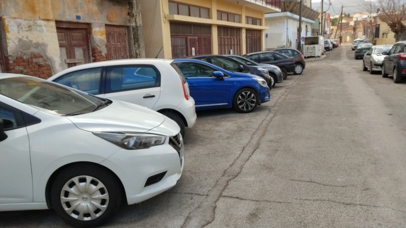Στην φωτογραφία φαίνεται μόνο η οδός Γεωργίου Θεοτοκά (πίσω από το ΡΕΧ). Το ίδιο ακριβώς ισχύει και για όλες σχεδόν της παρόδους. ΟΛΑ τα ΙΧ που βρίσκονται εκεί είναι ιδιωτικών επιχειρήσεων κακών επαγγελματιών.