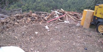 Μπάζα πεταμένα, ξύλα ντανιασμένα, σαβούρες βουνά, χιλιάδες πλαστικά μπιτόνια, δεκάδες παρατημένα αυτοκίνητα, παλέτες μέσα στα πεύκα, βρώμα και δυσωδία παντού και το κυριότερο, δεκάδες εστίες πυρκαγιάς δίπλα στο μοναδικό περιαστικό δάσος στο Νότιο μέρος της πόλης.