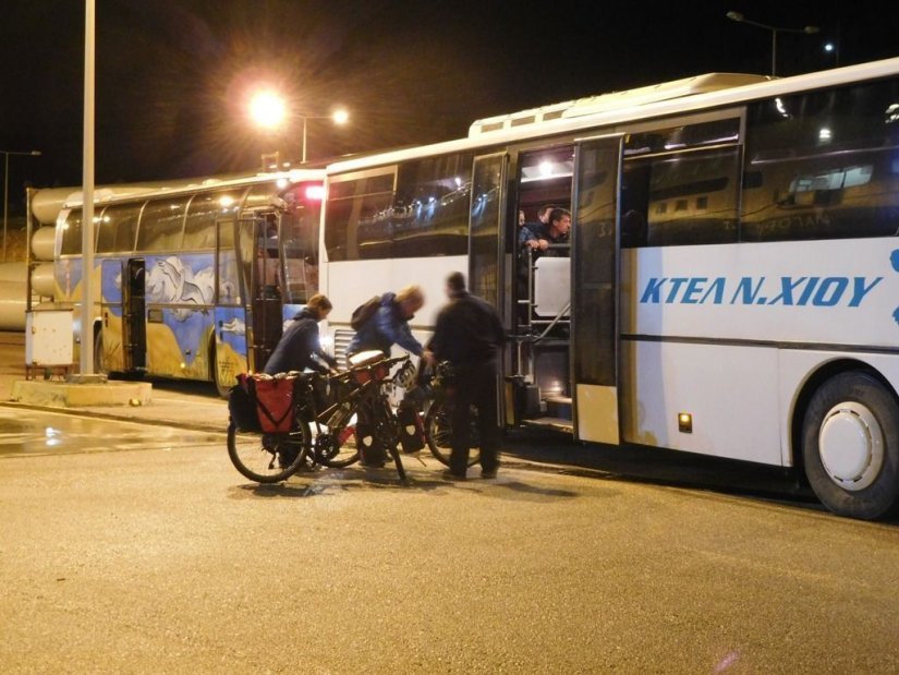 Ότι το υπεραστικό ΚΤΕΛ σταμάτησε να εκτελεί εδώ και ένα μήνα σχεδόν το δρομολόγιο Λιμένας Μεστών Χίος, την ώρα της άφιξης του πλοίου.