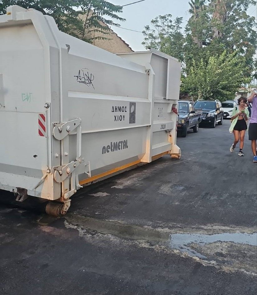 Τα... ζουμιά, που βλέπετε είναι από το κιβώτιο συμπίεσης σκουπιδιών πίσω από το REX.