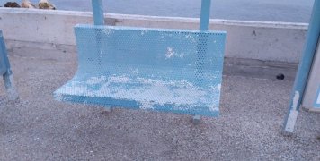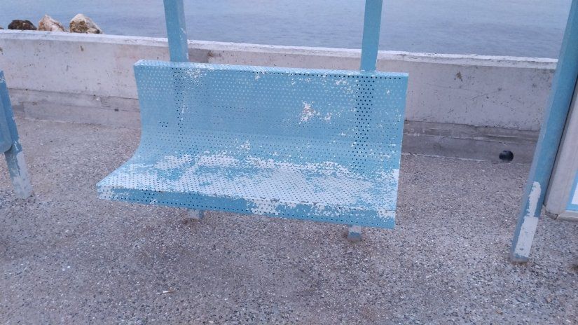 Λίγο πιο κάτω είναι η άλλη Στάση στα χρώματα της «χολέρας» έξω από το Αεροδρόμιο. Το επισημάναμε στις 10 Ιανουαρίου, το φωτογραφήσαμε, ο Αντιδήμαρχος Καθημερινότητας μας είπε, ότι θα την βάψουν εκείνοι, παρ’ ότι ως Στάση ανήκει στην Περιφέρεια. Η Στάση παραμένει όπως ακριβώς την βλέπετε στην ένθετη φωτογραφία.