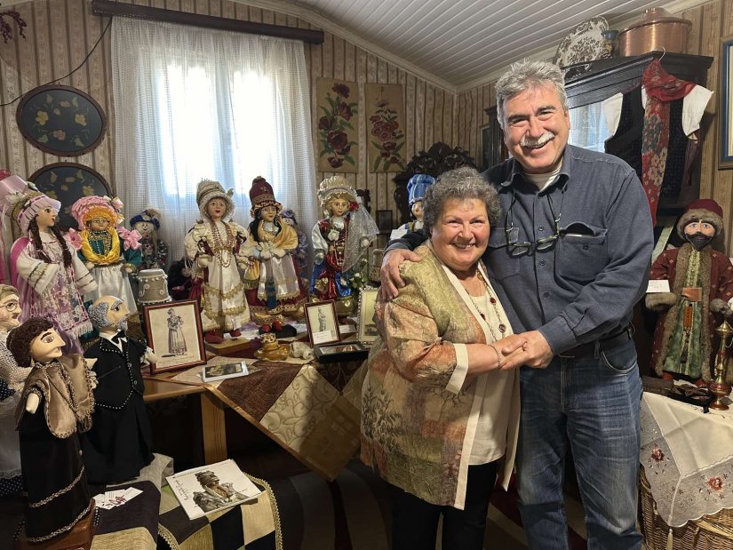 Η κυρία Μαρία από το μηδέν, από χαρτοπολτό με παλιές εφημερίδες και με ρετάλια, φτιάχνει κούκλες και τις ντύνει. Με την φαντασία της; Μερικές ναι. Οι περισσότερες όμως είναι από την Συλλογή Φιλίππου Αργέντη. Ο μεγάλος Χιώτης διέσωσε ότι γκραβούρα περιηγητών υπήρχε με παραδοσιακές φορεσιές και τις κράτησε στο Μουσείο της Βιβλιοθήκης Κοραή στην αιωνιότητα. Ε, η Μαρία Μπούσουλα έπλασε κούκλες μινιατούρες και τις έντυσε, με πιστότητα 100%!