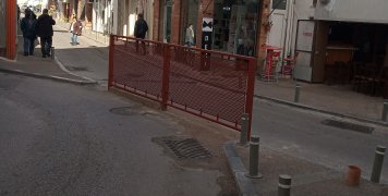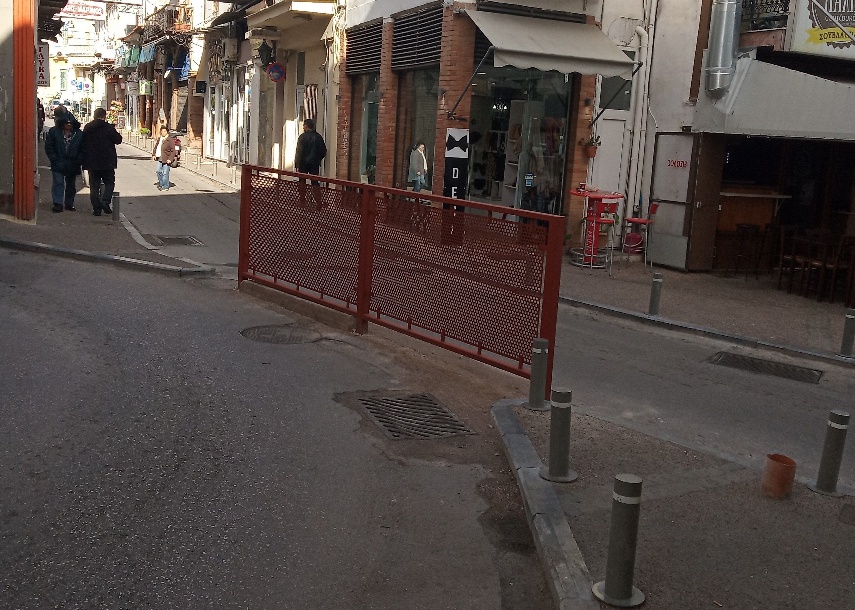 Δείτε την άλλη φωτογραφία. Αυτή την… σίτα για δεκαοχτούρες, την πήραν από τους κάδους, η ίδια ακριβώς χρησιμοποιείται για εγκλωβισμό κάδων καθαριότητας και την έμπηξαν απέναντι από την Κρήνη Συγγρού, λαϊκώς Πλατεία… Καλαμάρη.