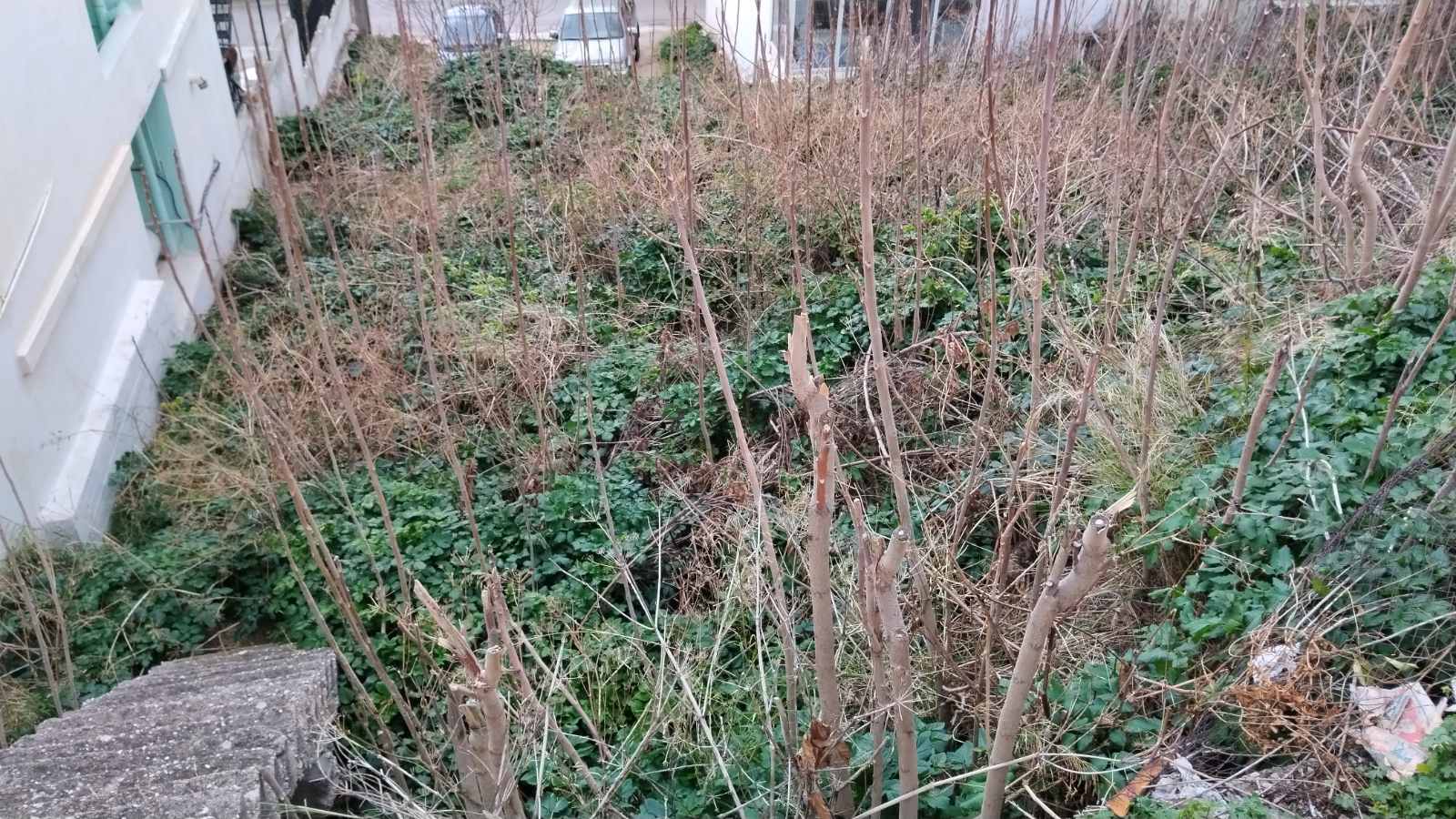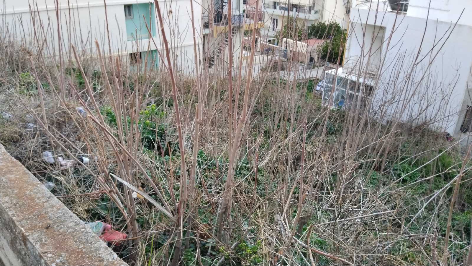 Αυτός λοιπόν ο χώρος έχει τα έρημα του τα χάλια. Κατηφορικός μεν αλλά μεγάλος, αντί να είναι μπαλκόνι με… θέα για την γειτονιά ή ένας χώρος στάθμευσης από αυτούς που έχομε τόσο ανάγκη, είναι σήμερα σκουπιδότοπος, γεμάτος χόρτα, ψώρες, μια ανοικτή εστία ρύπανσης.