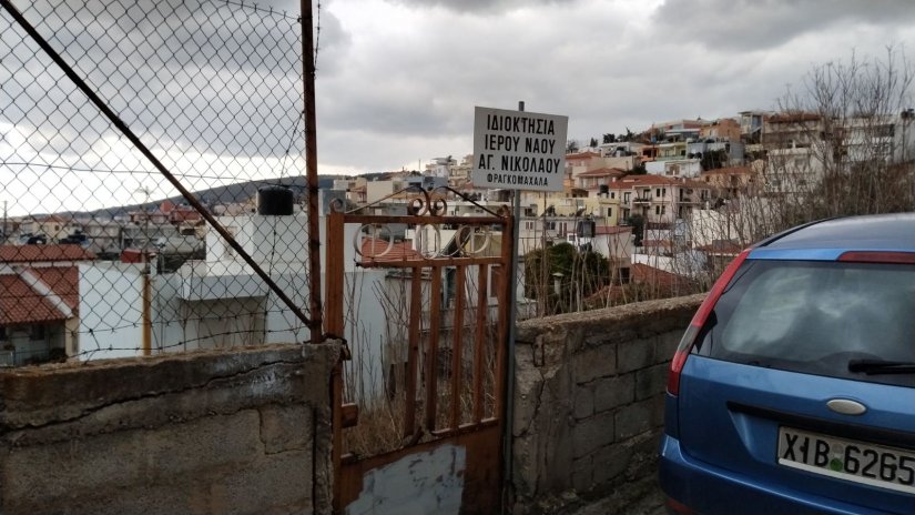 Προχθές λοιπόν που είχα βγάλει τον Χάρη μας βόλτα, να κάνει αυτό που ποτέ δεν κάνει μέσα στο σπίτι, γιατί δεν είναι… άνθρωπος και την ώρα που έκλεινα σε σακουλάκι τα προϊόντα εξαγωγής των εντερικών του σωλήνων και τα πέταγα σε ένα κάδο, ήρθα… πρόσωπο με πρόσωπο με μια πινακίδα, που μου θύμισε ότι ένας τεράστιος οικοπεδικός χώρος, που βρίσκεται επί της οδού Αγίας Μαρκέλλας, προς την Τουρλωτή, ανήκει στην ιδιοκτησιακά στην Εκκλησία του Αγίου Νικολάου Φραγκομαχαλά.