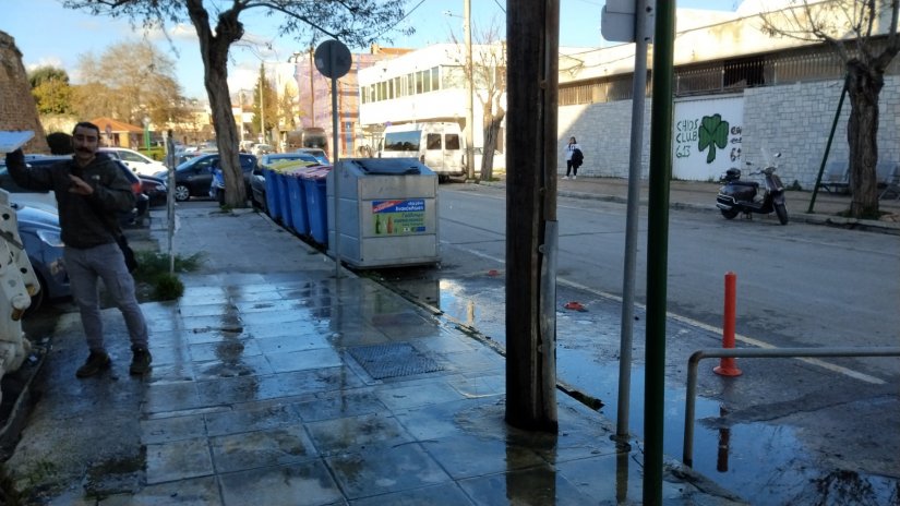 Ο δρόμος μπροστά στο κτίριο είναι πλημμυρισμένος, η ταράτσα φωνάζει ότι θα σαπίσει, το τοιχίο του κτιρίου το ίδιο. Στον τελευταίοι όροφο τα παράθυρα είναι ανοιγμένα, σπασμένα, όταν βρέχει το νερό μπαίνει ωμό στον όροφο, σημασία ΚΑΝΕΙΣ.