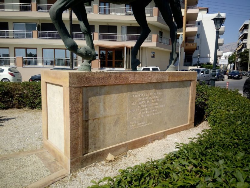 Πρωί, πρωί συνεργείο με εντολή του Δημάρχου Σταμάτη Κάρμαντζη επιδιόρθωνε τις πλάκες, που είχαν μαδήσει εδώ και καιρό στη βάση του αγάλματος του Στρατηγού Νικολάου Πλαστήρα στην Μπέλλα βίστα.