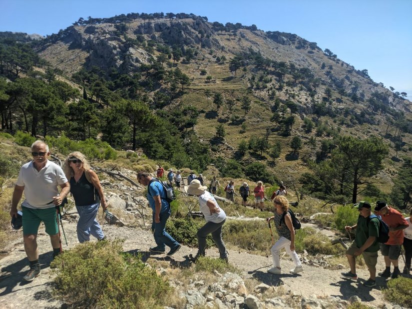 Εκτός από τις περιηγήσεις μας, πραγματοποιήσαμε στο νησί τόσο την πεζοπορική μας δραστηριότητα, με διαδρομές από την Ι.Μ Αγίου Μάρκου – στη Νέα Ιερά Μονή και στο Κάστρο της Γριάς στη γραφική βουνοπλαγιά των Καρδαμύλων, όσο και την ορειβατική μας δραστηριότητα, με ανάβασή στην κορυφή του Πελιναίου Όρους και σ’ όλη την κορυφογραμμή του.