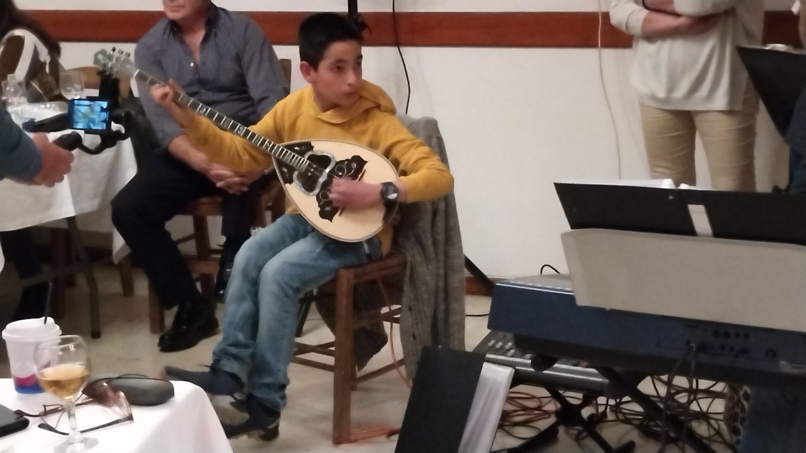 Στήνουν αυτί οι μουσικοί, τον προτρέπουν και από την παρέα του οι μεγαλύτεροι, οπότε ο μικρός παίρνει θάρρος και αρχίζει να παίζει.