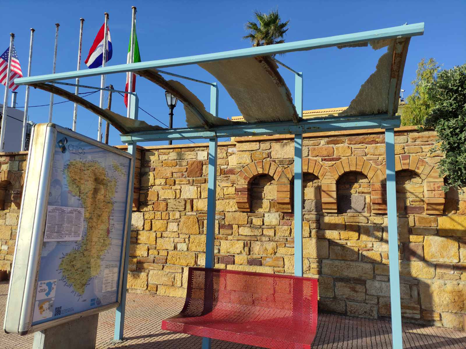 Με δεδομένο λοιπόν το ολίγον… βλάψιμο, έβλεπα σήμερα την στάση, η οποία αντικατέστησε την άλλη την «κάμπριο» (θυμηθείτε την πιο κάτω, είς τον πάτο της σελίδος) έξω από το Ελληνικό Κάστρο και σκεπτόμουνα να πω στον Δήμαρχο μας όταν τον δώ.