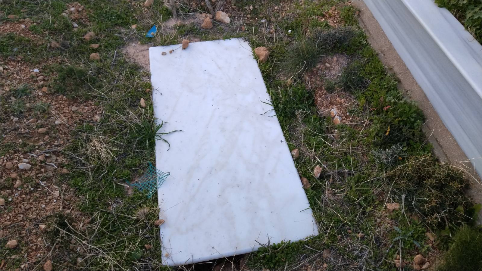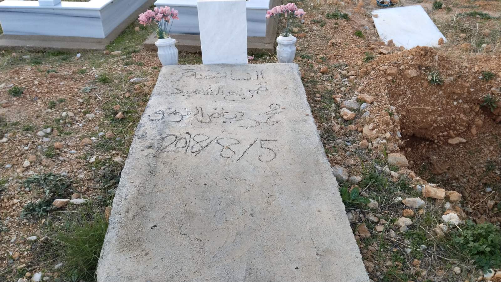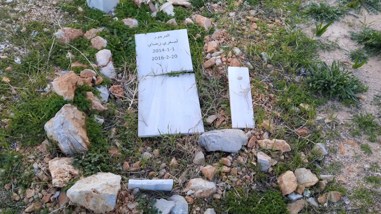 Να ένα τάφος… πολυτελείας. Σαν τα κρύα τα νερά πρέπει να ήταν η Φατμέ. Η χρονολογία στην πέτρα μας λέει πως δεν πρόλαβε να κλείσει τα 20. Ο, ή οι αγαπημένοι της στόλισαν τον τάφο με… στοργή από πέτρες. Έχουν οι πέτρες στοργή; Μα εδώ είχαν μέχρι και το μαντήλι, που κάποτε φόραγε στο λαιμό ή στο κεφάλι της περασμένο σε ένα αυτοσχέδιο βάζο. Δίπλα της ένας τάφος με… τίποτα πάνω του. Απλά για ταφική οριοθέτηση υπήρχε ένα ημικύκλιο με πέτρες. Στη μέση ένα σπασμένο μάρμαρο, περίσσευμα από δικό μας τάφο. Στη γή ένα δίχρονο παιδί.