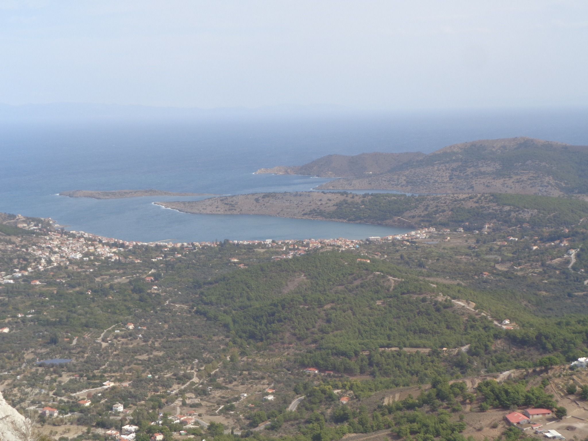 Φτάνοντας στην κορυφή, η ευρύτερη περιοχή των Καρδαμύλων , η Αιγνούσα, τα Μικρασιατικά παράλια και η Μυτιλήνη σου προσφέρονται κυριολεκτικά στα πόδια σου προς αγαλλίαση ψυχής και τέρψη οφθαλμών.