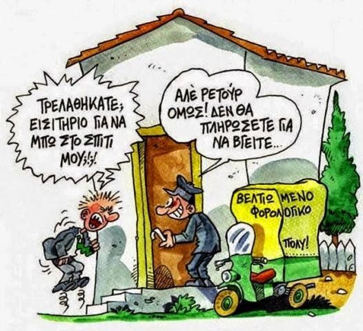 Τι κάνει η κυβέρνηση και η προηγούμενη και αυτή; Γράφει το Ανώτατο Δικαστήριο της χώρας στους γεννητικούς της αδένες για να μην τα γράψουμε όπως τα λέει ο κόσμος όλος και παρεξηγηθούμε και συνεχίζει να στέλνει τα παράνομα μπιλιέτα δήμευσης των σπιτιών των πολιτών. Και δεν φτάνει αυτό, έρχεται πέρσι στην Θεσσαλονίκη ο νέος και ωραίος Αλέξης Τσίπρας (δίνω έμφαση, γιατί έχω πεισθεί εδώ και χρόνια για το βαθύ πολιτικό κριτήριο του λαού μας) και δεσμεύεται «Δεν θα φορολογήσουμε κανέναν με πλασματικές αξίες. Αναπροσαρμόζουμε άμεσα τις αντικειμενικές αξίες τουλάχιστον 30 έως 35%»