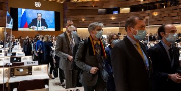 Δεκάδες διπλωμάτες, κυρίως της Δύσης (από ΗΠΑ, ΕΕ, Ηνωμένο Βασίλειο), αποχώρησαν από την αίθουσα την ώρα της ομιλίας του Ρώσου υπουργού Εξωτερικών Σεργκέι Λαβρόφ.
