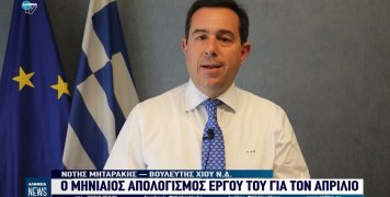Τον μηνιαίο απολογισμό του του Απριλίου δημοσιοποίησε σήμερα ο βουλευτής Χίου της Ν.Δ., Νότης Μηταρράκης. Σε αυτόν κάνει αναφορά στο...