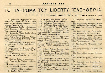 Πράγματι ήταν ένα απόσπασμα από τα «Ναυτικά Νέαα», στο οποίο το Προξενείο Αμβέρσας, κάνει ονομαστική αναφορά στην τύχη του πληρώματος του πλοίου s/s ‘’ Ελευθερία,’’ μετά την απώλεια του. Μέσα στα ονόματα, ήταν και αυτό του Αξέχαστου Παππού μου Κωνσταντή Παντελ. Μπουσσέ - Θερμαστή, καθώς και άλλων τριών συγχωριανών μου από την Ναυτομάνα Λαγκάδα της Χίου. Των αξέχαστων Γιαννόπαπα Γιάννη - Ναύτη. Χαβιάρα Μιχάλη - Ναύτη. Μπουσσέ Γιώργης - Βοηθ. Θαλαμηπόλου.