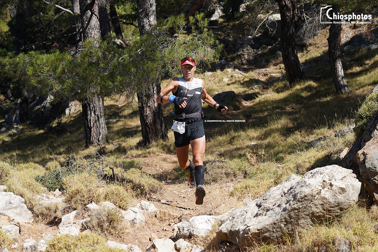 Στην πανέμορφη διαδρομή μήκους 23 χλμ. και 1240 μ. θετικής υψομετρικής πήραν μέρος 57 αθλητές - αθλήτριες οι οποίοι έτρεξαν στα μονοπάτια του Πηγάνιου Όρους στο χωριό Καρυές της Χίου. Η διαδρομή ήταν δύσκολη και απαιτητική, απευθυνόμενη σε έμπειρους δρομείς, αλλά η μαγευτική θέα της Χίου αποζημίωσε με το παραπάνω τους δρομείς που πήραν μέρος.