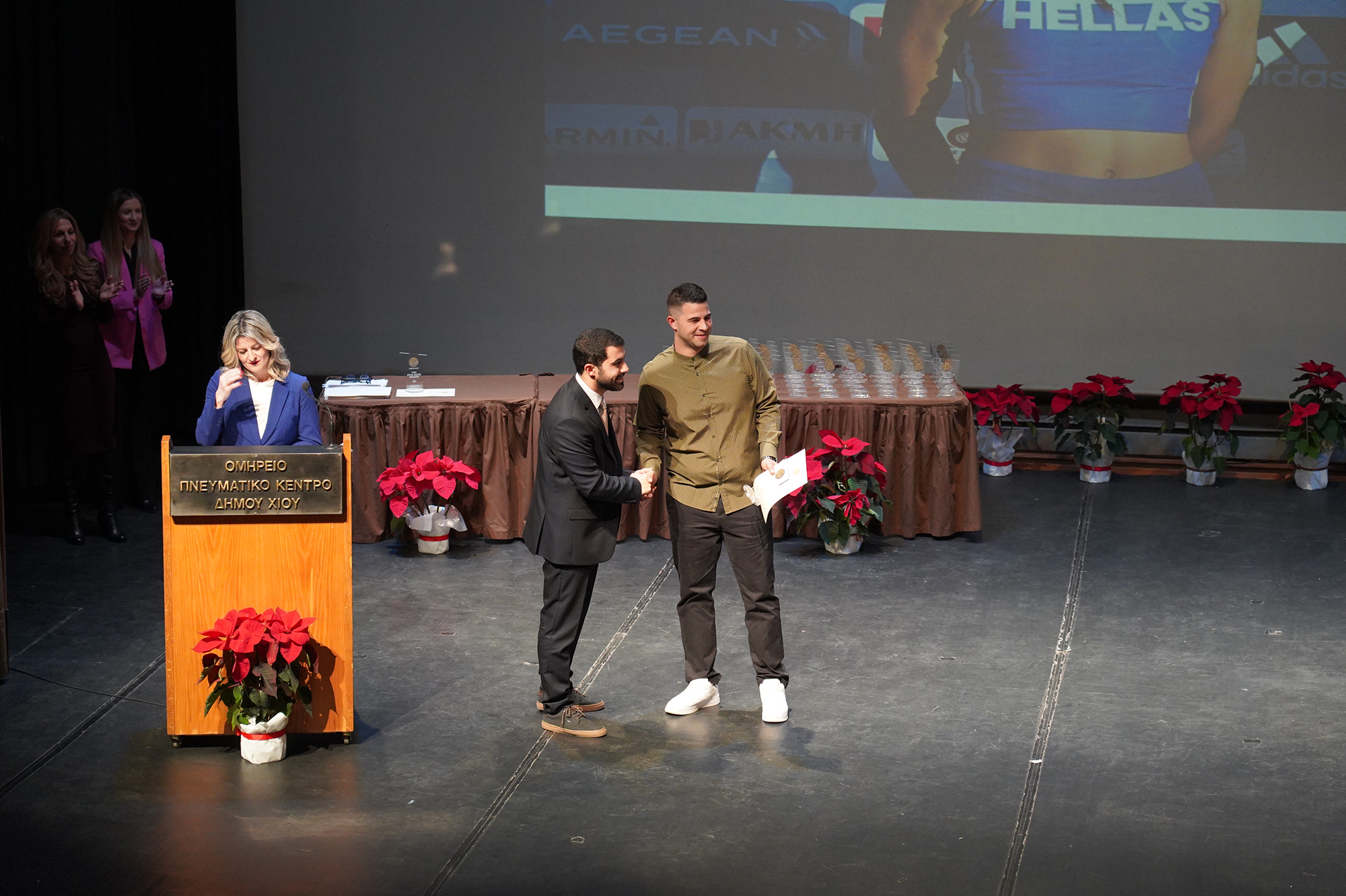 Ο Δήμος Χίου ως αρωγός της εκδήλωσης βράβευσε 96 χιώτες αθλητές που διακρίθηκαν σε όλα τα αθλήματα.