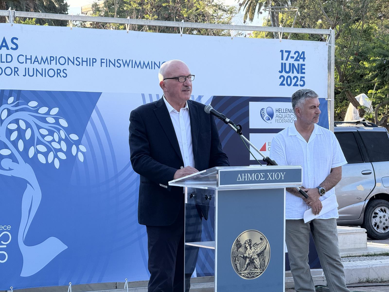 Με παρέλαση αθλητών από του Χανδρή μέχρι την κεντρική πλατεία Νικολάου Πλαστήρα, συνοδεία της Φιλαρμονικής του Δήμου Χίου, χαιρετισμούς σε αυτήν και συμμετοχή σε παραδοσιακούς χορούς, έγινε το απόγευμα η τελετή έναρξης του Παγκοσμίου πρωταθλήματος Τεχνικής Κολύμβησης, που διεξάγεται στο Ιωνικό έως τις 23/6/25.