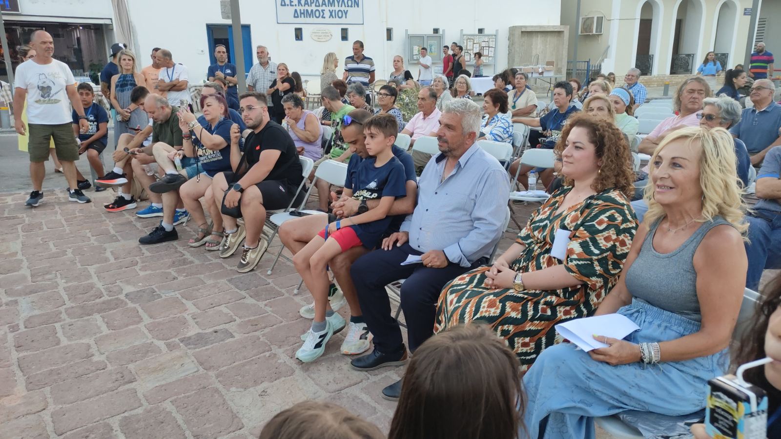 Στο τέλος της εκδήλωσης τους πολλούς παρευρισκόμενους χαιρέτησαν ο Δήμαρχος Χίου Γ. Μαλαφής, ο Αντιδήμαρχος Καρδαμύλων Γιάννης Μπουζέκας, η Πρόεδρος της Δημοτικής Κοινότητας Κατερίνα Μαρινάκη και η Πρόεδρος της Πολιτιστικής Επιτροπής της Δημ. Ενότητας Δώρα Σαββοπούλου.