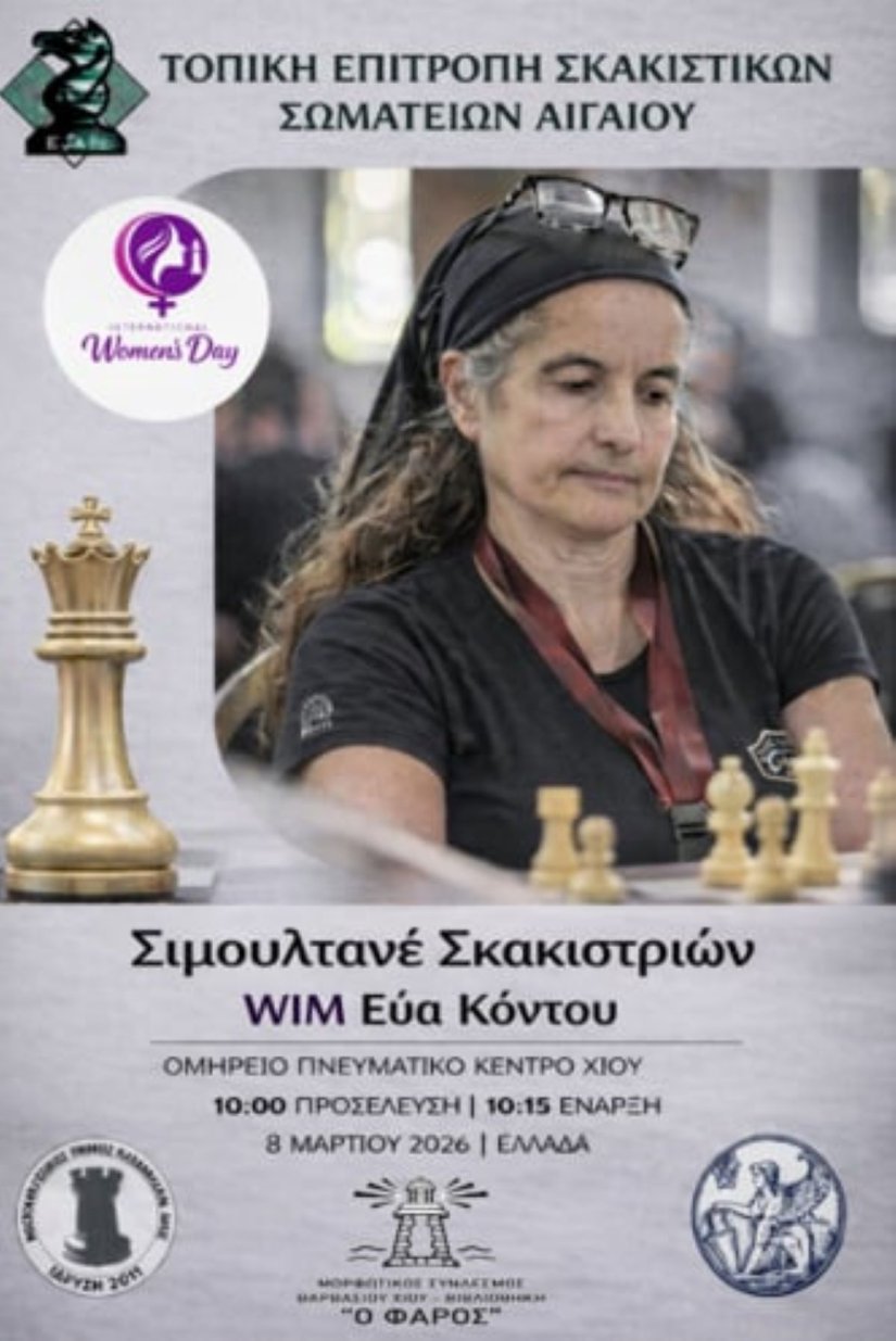 Η Χίος συμμετέχει στην πανελλήνια δράση «Οι Βασίλισσες του Σκακιού ζωντανεύουν τις πλατείες» της Ελληνικής Σκακιστικής Ομοσπονδίας, γιορτάζοντας την Παγκόσμια Ημέρα της Γυναίκας, την Κυριακή 8 Μαρτίου 2026.