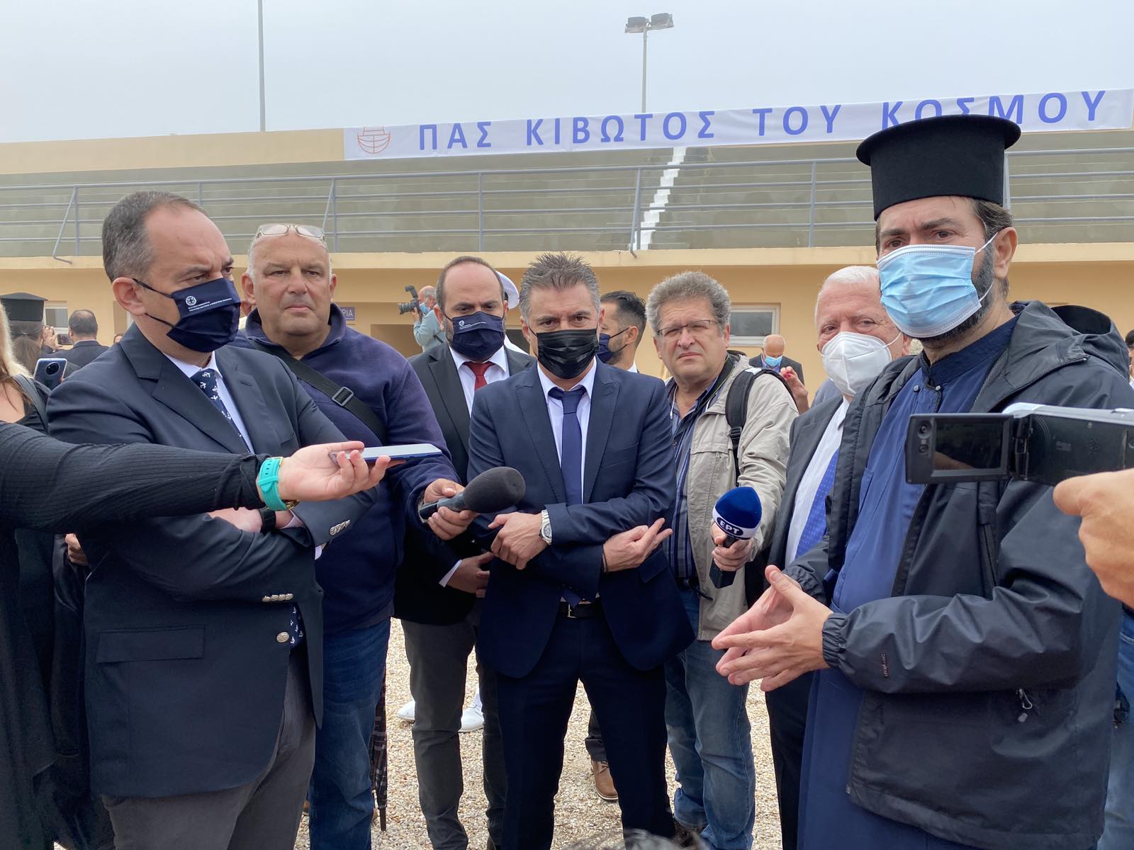 Μέχρι και ο καιρός στάθηκε σύμμαχος στην εκδήλωση που διοργανώθηκε το μεσημέρι του Σαββάτου 9 Οκτωβρίου 2021, στην «Κιβωτό του Κόσμου – Αιγαίου», αφού μετά από την έντονη βροχόπτωση και πολύ ομίχλη που υπήρχε πάνω στο Αίπος βγήκε ο ήλιος και μπόρεσαν οι επίσημοι προσκεκλημένοι και ο κόσμος να απολαύσουν τα εγκαίνια των αθλητικών εγκαταστάσεων του παιδικού χωριού. Παρουσία του υπουργού Εμπορικής Ναυτιλίας & Νησιωτικής Πολιτικής Γιάννη Πλακιωτάκη, του γενικού γραμματέα του ΥΕΝ, Μανώλη Κουτουλάκη, του Περιφερειάρχη Β. Αιγαίου, Κώστα Μουτζούρη, της Προέδρου του ΣΕΓΑΣ και ολυμπιονίκη Σοφίας Σακοράφα, του πιο γρήγορου λευκού αθλητή στα 200 μ. των Ολυμπιακών Αγώνων του Σίδνεϊ, Κώστα Κεντέρη αλλά και μεγάλων σπουδαίων φιλοξενούμενων, τεσσάρων θρύλων του 2004, του ευρωβουλευτή Θοδωρή Ζαγοράκη, του Αντώνη Νικοπολίδη, του Άγγελου Μπασινά και του Γιώργου Καραγκούνη. Παρόντες επίσης οι δύο χιώτες Παραολυμπιονίκες, Κέλλυ Λουφάκη και Παντελής Καλόγερος και όλες οι τοπικές Αρχές.