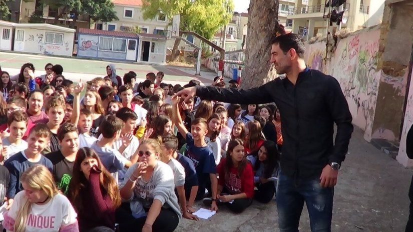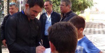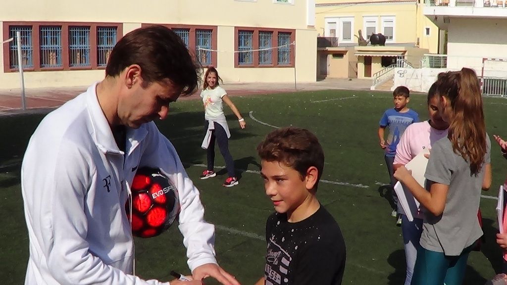 Αυτό συνέβη όταν επισκέφθηκαν το 1ο και 3ο Γυμνάσιο Χίου, μίλησαν στους μαθητές για το ποδόσφαιρο, απάντησαν στα ερωτήματα τους, μοίρασαν μπάλες και υπέγραψαν αυτόγραφα, πριν φύγουν για μια βόλτα στην Απλωταριά και ένα καφέ στην Προκυμαία.