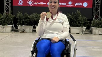 Ο Περιφερειάρχης Βορείου Αιγαίου Κωνσταντίνος Μουτζούρης, συγχαίρει την Χιώτισσα Αθλήτρια των Ιώνων, Ελισάβετ Ιωσηφίδου, για την κατάκτηση του χάλκινου μεταλλίου στην κατηγορία BC2 στη διοργάνωση του World Boccia Challenger, που διεξήχθη στο Πόζναν της Πολωνίας.
