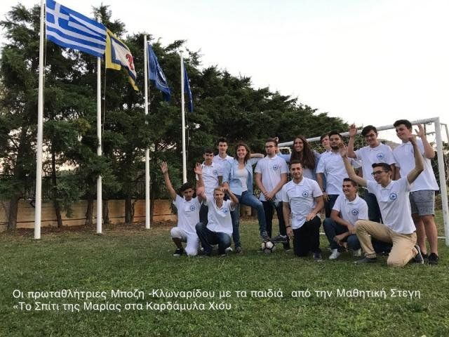 Στις ημέρες παραμονής τους, στο νησί της Χίου, τα δύο χρυσά κορίτσια της ελληνικής ιστιοπλοΐας, επισκέφθηκαν τους αθλητές του Ναυτικού Ομίλου Χίου και του Ναυτικού Ομίλου Καρδαμύλων, κατά την διάρκεια των προπονήσεων τους, ενώ παρουσίασαν στις κατάμεστες αίθουσες του Ιδρύματος «Μαρία Τσάκος» και της Μαθητικής Στέγης «Το Σπίτι της Μαρίας» στα Καρδάμυλα την αξία του ναυταθλητισμού, την επιρροή του στην καθημερινή ζωή και πως ο πρωταθλητισμός μπορεί από αυτοσκοπός να γίνει το μέσο για την ολοκλήρωση του χαρακτήρα των αθλητών. «Έχουμε εντυπωσιαστεί από τις δομές του Ιδρύματος Μ. Τσάκος, αλλά πολύ περισσότερο από τις δράσεις τους. Ενημερωθήκαμε για όλα τα προγράμματα ναυτικής έρευνας, για την λειτουργία της Μαθητικής Στέγης στα Καρδάμυλα, αλλά και για τις εκπαιδευτικές δράσεις που οργανώνονται για το μέλλον. Ευχόμαστε πραγματικά κάθε επιτυχία στο έργο του» σημείωσαν κλείνοντας την ομιλία τους και αποχαιρετώντας τους μικρούς και μεγάλους ακροατές.