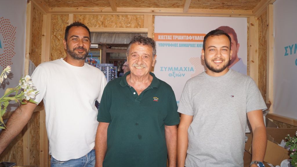 Στην μικρή πλατεία ,στην είσοδο της Απλωταριάς, έχουν στηθεί τα εκλογικά περίπτερα 4 εκ των 5 δημοτικών συνδυασμών ενώ έξω από το κτήριο της Περιφερειακής Ενότητας Χίου το περίπτερο της Λαϊκής Συσπείρωσης.