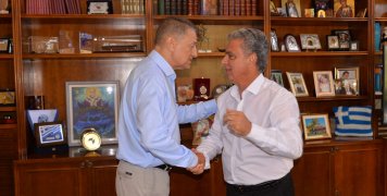 Στην επίσκεψή του στο εργατικό κέντρο συναντήθηκε με συνταξιούχους ναυτικούς, κατέγραψε τις ανησυχίες τους και τόνισε ότι με ομαδική, σκληρή και μεθοδική δουλειά οι προκλήσεις αντιμετωπίζονται με επιτυχία.