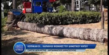 Ξεκίνησε από νωρίς το πρωί η κοπή των «καραφλών» φοινίκων στο δημοτικό κήπο καθώς, όπως ανέφερε ο αντιδήμαρχος καθαριότητας Γιώργος Μπελέγρης δεν...
