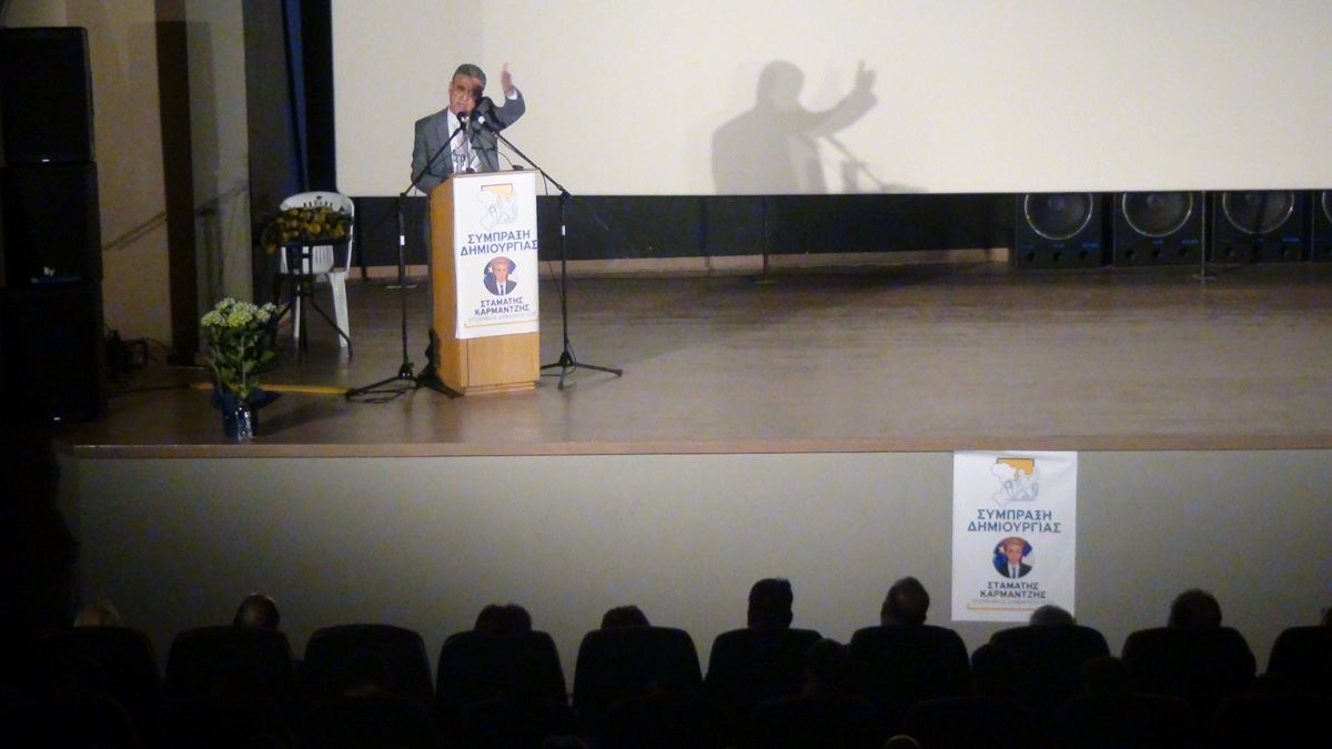 Με γεμάτο το κινηματοθέατρο "Πρεμιέρ" πρώην ''Διάνα'', στις 7μ.μ. σήμερα Τετάρτη 8 Μα'ί'ου 2019, ο Σταμάτης Κάρμαντζης παρουσίασε τον συνδυασμό του, διεκδικώντας την ψήφο των δημοτών για να αναλάβει όπως τόνισε ''να υπηρετήσει'' το Δήμο Χίου από την πρώτη Κυριακή.