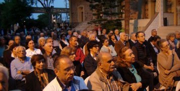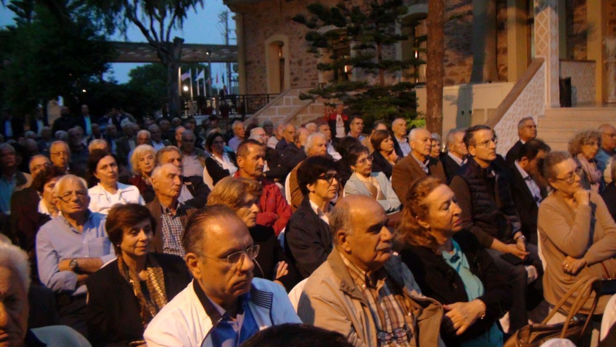 Πολλά γνωστά πρόσωπα της πολιτικής σκηνής του νησιού και της Τοπικής Αυτοδιοίκησης της Χίου, όπως ο Αριστείδης Ζαννίκος, ο Μάρκος Μεννής, ο Γιώργης Βαρκάρης, ο Πολύδωρος Λαμπρινούδης και ο Κώστας Τριαντάφυλλος, ήταν στην πρώτη γραμμή του ακροατηρίου και του κοινού, που γέμισε το χώρο και το διάδρομο της αυλής, μπροστά στην είσοδο του Ελληνικού Κάστρου.