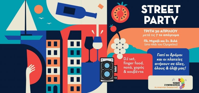 Πιστή στο σύνθημά της «Ας σκεφτούμε διαφορετικά», η Χιακή Συμπολιτεία διοργανώνει απόψε μια διαφορετική εκδήλωση: ένα street party στην πλ. Μιχαήλ και Στ. Ξυλά (δίπλα από το Ομήρειο), που θα ξεκινήσει από τις 7 το απόγευμα. Με το σκεπτικό ότι «οι δρόμοι και οι πλατείες ανήκουν σε όλες, όλους & όλ@ μας!», η δημοτική παράταξη καλεί στην αποψινή εκδήλωση για να αναδείξει για μια ακόμη φορά τη σημασία των δημόσιων χώρων που πρέπει να είναι ανοιχτοί, προσβάσιμοι και γεμάτοι ζωή, δίνοντας ζωή στην πόλη, επισημαίνοντας ότι θα υπάρχει dj set, finger food και αφορμές για χορό και κουβέντα!
