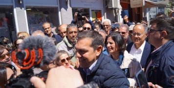 Ο πρόεδρος του ΣΥΡΙΖΑ/ΠΣ έφτασε το μεσημέρι στην Χίο, όπου έγινε δεκτός με χειροκρότημα και συνθήματα από ένα ακροατήριο κάθε ηλικίας που γέμισε τον πεζόδρομο της Βουπάλου.