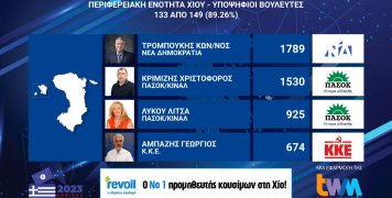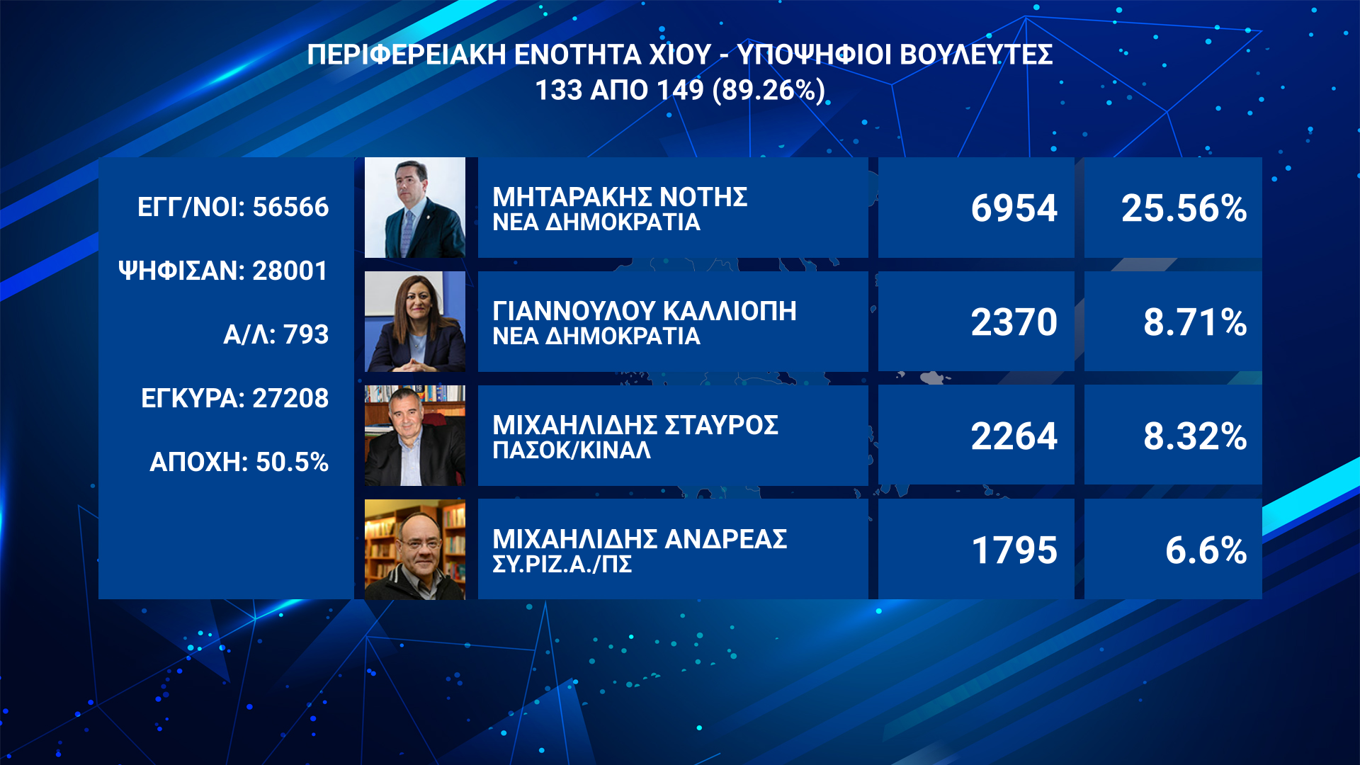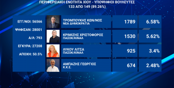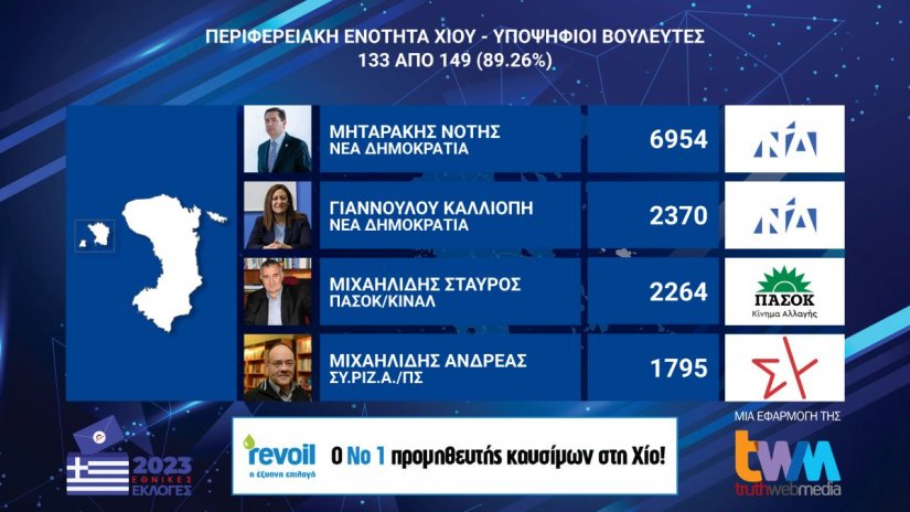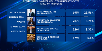 Ο Νότης Μηταράκης είναι ο πρώτος σε σταυρούς υποψήφιος στο νησί μας αφού με καταμετρημένα τα 133 από τα 149 εκλογικά τμήματα έλαβε 6.954 σταυρούς.