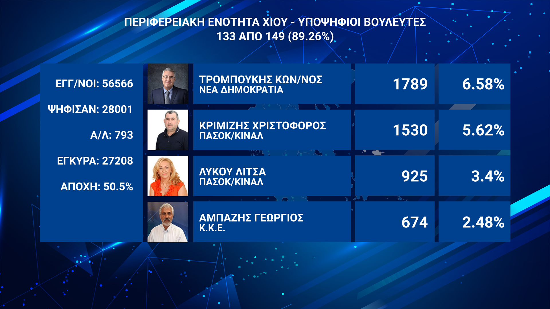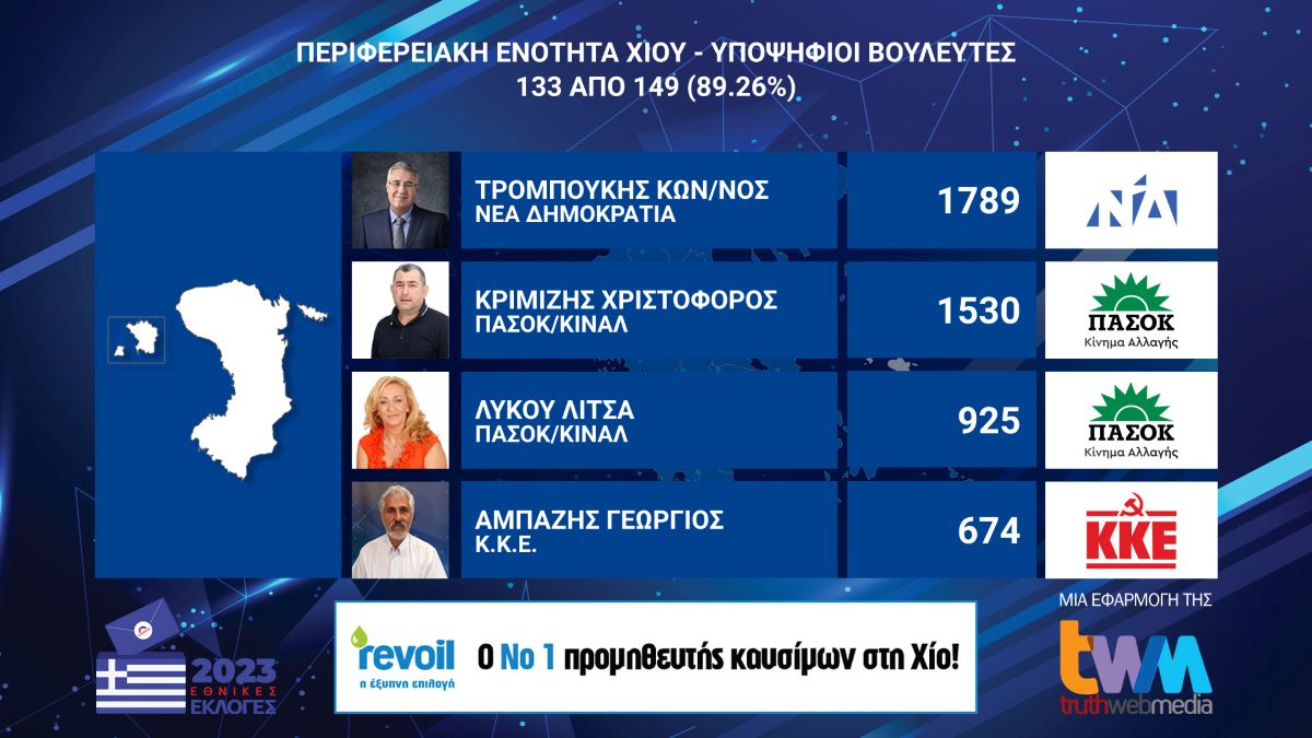 Δεύτερη αναδείχθηκε, πάλι από την Νέα Δημοκρατία η Καλλιόπη Γιαννούλου με 2.370 σταυρούς. Από το ΠΑΣΟΚ πρώτος αναδείχθηκε ο Σταύρος Μιχαηλίδης με 2.264 σταυρούς, ενώ ο πρώην Βουλευτής Ανδρέας Μιχαηλίδης έλαβε 1.795 σταυρούς.