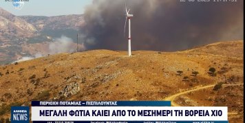 Μεγάλες διαστάσεις λαμβάνει η φωτιά στην Βόρεια Χίο, η οποία ξέσπασε λίγο μετά τις 2 το μεσημέρι σήμερα στην Ποταμιά.
