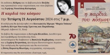 Οι εκδόσεις Κέδρος και το βιβλιοπωλείο Πυξίδα προσκαλούν στην παρουσίαση του νέου βιβλίου της Ειρήνης Νικολάκη-Καλαμάρη "Η καρδιά του κόσμου...