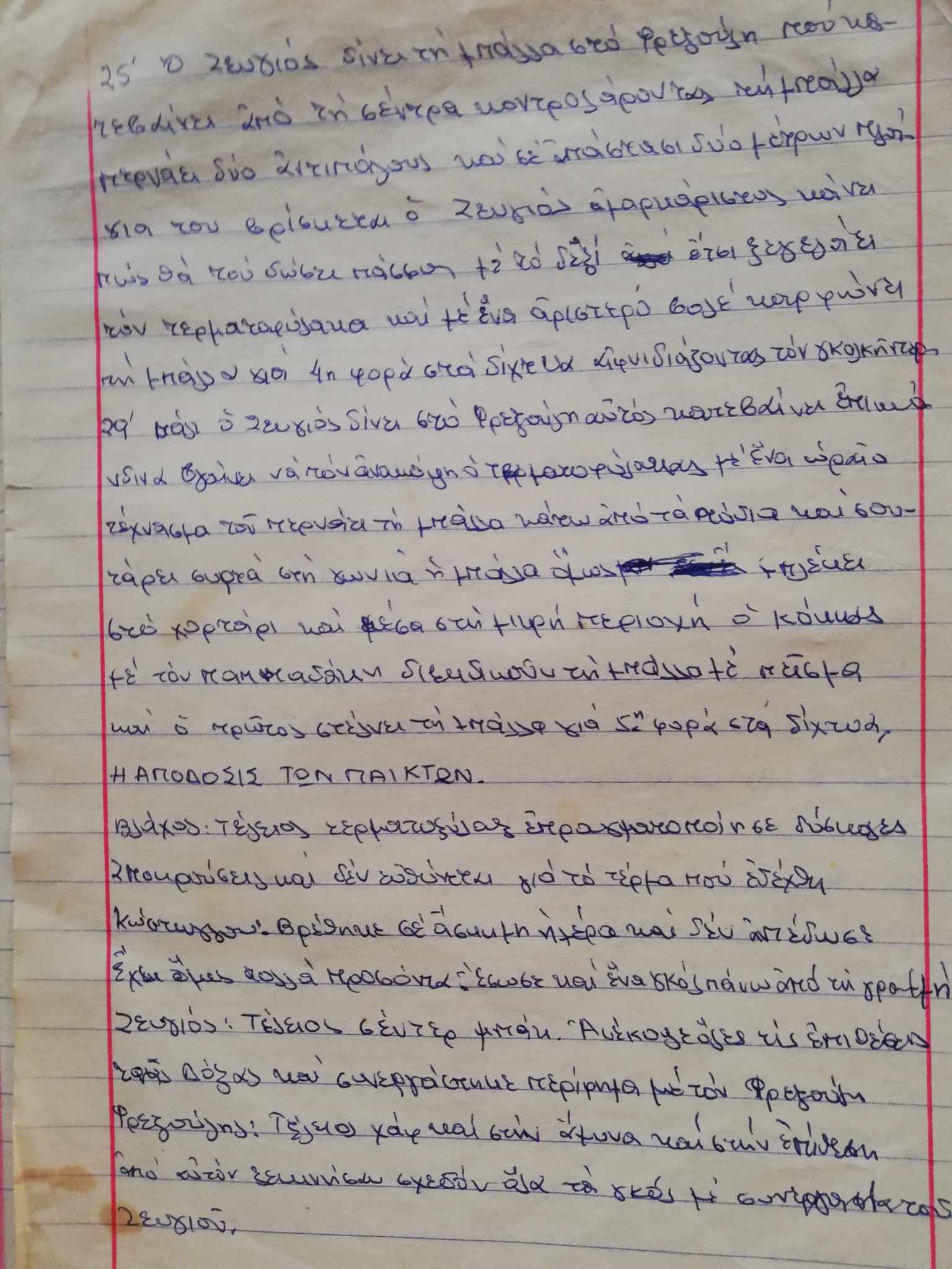 Και φυσικά υπάρχει και η… περιγραφή του ματς με την παρατήρηση ότι οι ομάδες έπαιξαν με 6 παίκτες και μόνο 30 λεπτά. Σε ποιο λεπτό (;) μπήκαν τα γκολ και οι συνδυασμοί που προηγήθηκαν και από ποιους παίκτες. Και να ΄ταν μόνο αυτό; Είχα κάνει και… κριτική στην απόδοση των συμπαικτών ενώ στο τέλος τους έβαλα και βαθμό!